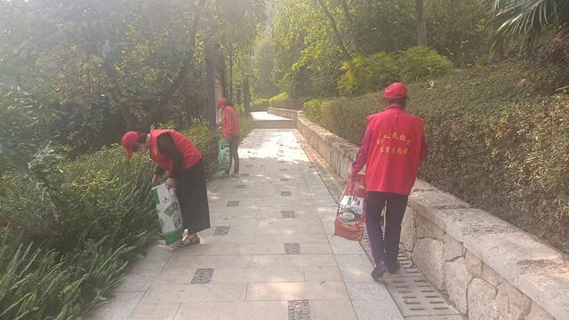 到达目的地后,志愿者进行了简单分工,便在预先规划好的区域迅速展开行动。他们一手拿着垃圾袋,一手握着夹子,沿着人行道认真清理道路两边、绿化带里、草丛及树林中的饮料瓶、纸屑、果皮、小食品袋等垃圾。对于灌木丛深处的垃圾,他们或是弯腰,或是借助工具,一点点将其取出,不放过任何一个角落。在风景秀丽的景区中,志愿者们身着红马甲,成为万绿丛中的一抹亮色 。